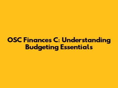 OSC Finances C: Understanding Budgeting Essentials