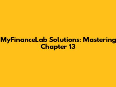 MyFinanceLab Solutions: Mastering Chapter 13