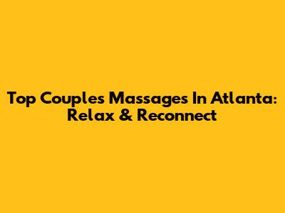 Top Couples Massages In Atlanta: Relax & Reconnect
