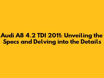 Audi A8 4.2 TDI 2011: Specs, Features & More!