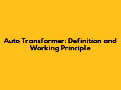 Auto Transformer: Definition And Working Principle