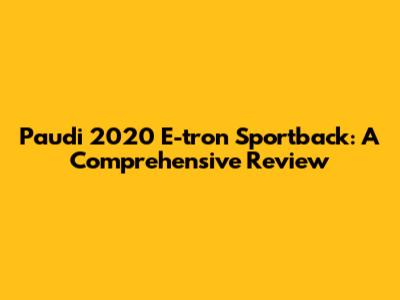 Paudi 2020 E-tron Sportback: A Comprehensive Review