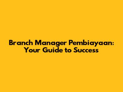 Branch Manager Pembiayaan: Your Guide To Success