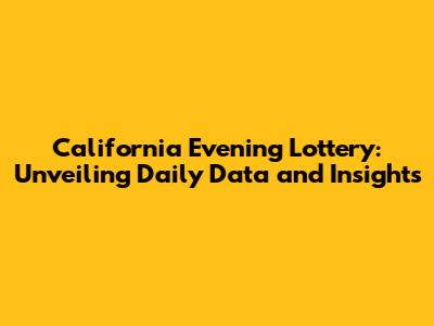 California Evening Lottery: Daily Data & Analysis