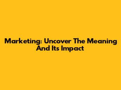 Marketing: Uncover The Meaning And Its Impact