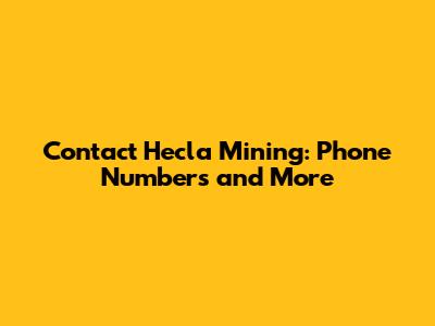 Hey there, fellow mining enthusiasts! Ever needed to get in touch with Hecla Mining Company? Maybe you're an investor, a potential job seeker, or just curious about their operations. Well, you've come to the right place! This guide is your one-stop shop for finding all the essential contact information you need, including the Hecla Mining Company phone number, and other ways to connect with them. So, grab a seat, get comfy, and let's dive into the details!