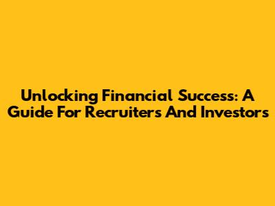 Unlocking Financial Success: A Guide For Recruiters And Investors