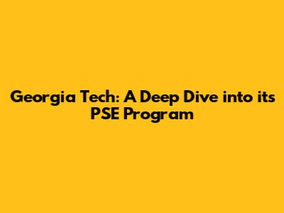 Georgia Tech: A Deep Dive Into Its PSE Program
