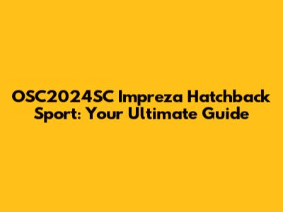 OSC2024SC Impreza Hatchback Sport: Your Ultimate Guide