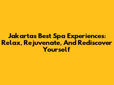 Jakarta's Best Spa Experiences: Relax, Rejuvenate, And Rediscover Yourself