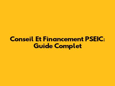 Conseil Et Financement PSEIC: Guide Complet