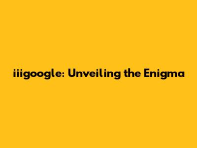 Iiigoogle: Unveiling The Enigma