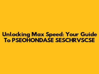 Unlocking Max Speed: Your Guide To PSEOHONDASE SESCHRVSCSE