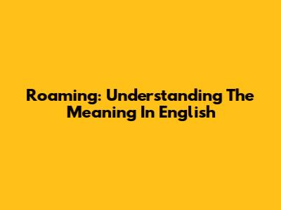 Roaming: Understanding The Meaning In English
