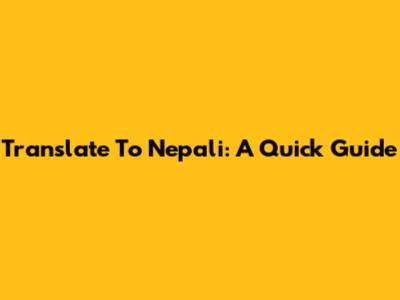 Translate To Nepali: A Quick Guide