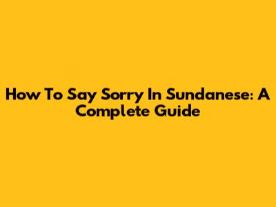 How To Say Sorry In Sundanese: A Complete Guide