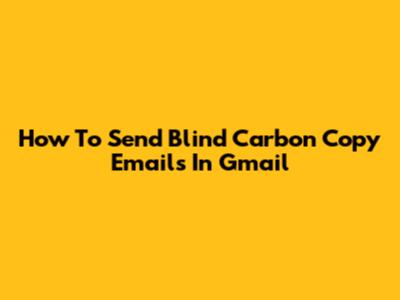 How To Send Blind Carbon Copy Emails In Gmail