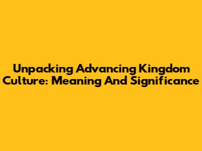 Unpacking 'Advancing Kingdom Culture': Meaning And Significance