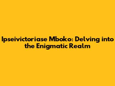 Ipseivictoriase Mboko: Unveiling The Enigmatic World