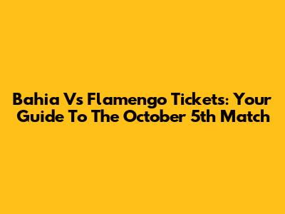 Bahia Vs Flamengo Tickets: Your Guide To The October 5th Match