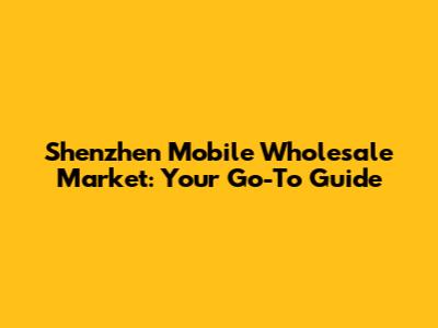 Shenzhen Mobile Wholesale Market: Your Go-To Guide