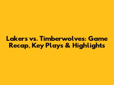 Lakers Vs. Timberwolves: Game Recap, Key Plays & Highlights