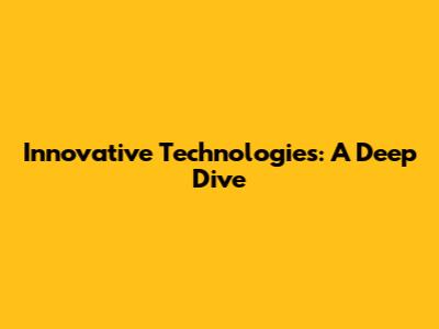 Innovative Technologies: A Deep Dive