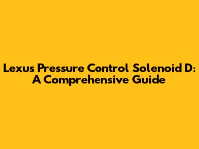 Hey guys! Ever dealt with a pesky issue in your Lexus and wondered, "What's going on with this pressure control solenoid D?" Well, you're in the right place! This article is all about helping you understand this critical component, why it matters, and how to troubleshoot and potentially fix problems related to the pressure control solenoid D in your beloved Lexus. We'll dive deep, making sure you have all the info you need, whether you're a seasoned DIYer or just starting to learn about car mechanics. So, buckle up, and let's get started!