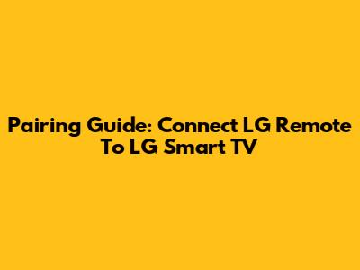 Pairing Guide: Connect LG Remote To LG Smart TV