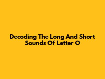 Decoding The Long And Short Sounds Of Letter O