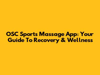 OSC Sports Massage App: Your Guide To Recovery & Wellness
