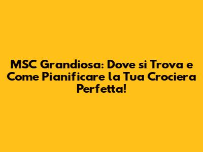 MSC Grandiosa, una delle navi più imponenti della flotta MSC Crociere, è un vero e proprio gioiello galleggiante che offre un'esperienza di crociera senza pari. Ma dove si trova esattamente questa meraviglia? In questo articolo, esploreremo dove si trova MSC Grandiosa, quali sono i suoi itinerari, come puoi rintracciarla e, soprattutto, come pianificare la tua prossima vacanza da sogno a bordo di questa magnifica nave. Quindi, preparati, perché stiamo per salpare verso un viaggio ricco di informazioni utili e consigli pratici per vivere al meglio la tua esperienza con MSC Grandiosa!