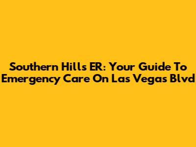 Southern Hills ER: Your Guide To Emergency Care On Las Vegas Blvd