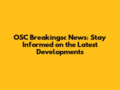 OSC Breakingsc News: Latest Updates And Developments