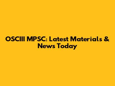OSCIII MPSC: Latest Materials & News Today
