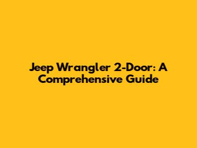 Jeep Wrangler 2-Door: A Comprehensive Guide