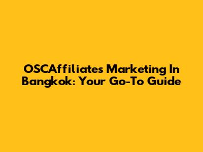 OSCAffiliates Marketing In Bangkok: Your Go-To Guide