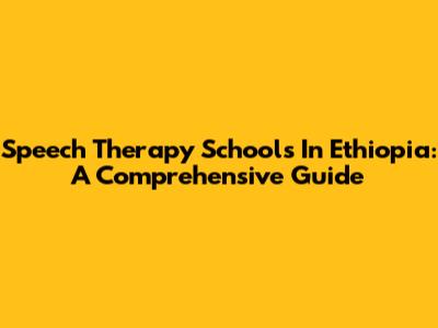 Speech Therapy Schools In Ethiopia: A Comprehensive Guide