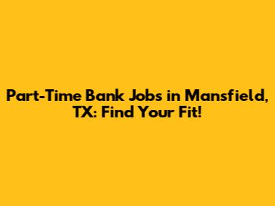 Exploring Part-Time Bank Job Opportunities in Mansfield, TX