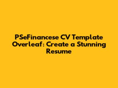 Crafting a compelling CV is crucial in today's competitive job market. The PSeFinancese CV template Overleaf offers a streamlined solution for creating a professional and visually appealing resume. Whether you're a recent graduate or an experienced professional, leveraging this template can significantly enhance your chances of landing that dream interview. Let's dive into why this template stands out, how to use it effectively, and tips for customizing it to reflect your unique skills and experiences.