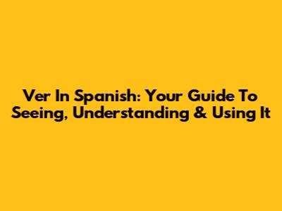 Ver In Spanish: Your Guide To Seeing, Understanding & Using It