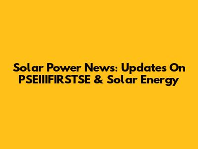 Solar Power News: Updates On PSEIIIFIRSTSE & Solar Energy