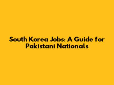 South Korea Jobs: A Guide For Pakistani Nationals