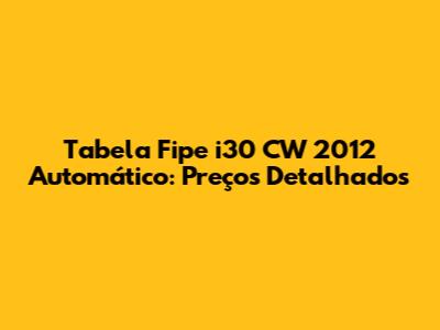 Consultar a Tabela Fipe i30 CW 2012 automático é moleza, galera! Você pode fazer isso de algumas formas: