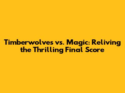 Hey sports fanatics! Ever found yourself buzzing with excitement, desperately trying to catch the final score of a nail-biting basketball game? Well, let's dive right into the heart of the action and relive the unforgettable clash between the Minnesota Timberwolves and the Orlando Magic. This matchup wasn't just any game; it was a testament to the unpredictable and thrilling nature of the sport we all love. From the tip-off to the final buzzer, every moment was a rollercoaster of emotions, showcasing the raw talent, strategic brilliance, and sheer determination of both teams. Let's get into the nitty-gritty of what made this game so special, focusing on the final score and the context surrounding it.