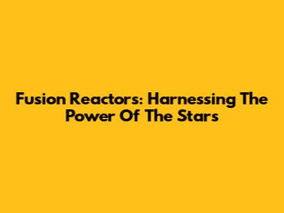 Fusion Reactors: Harnessing The Power Of The Stars