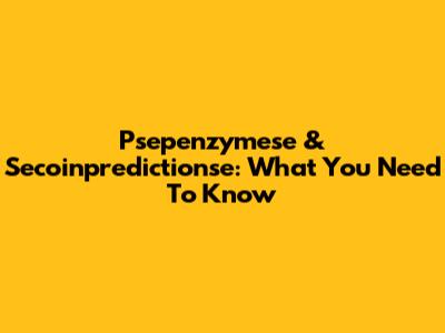 Psepenzymese & Secoinpredictionse: What You Need To Know