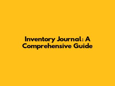 Inventory Journal: A Comprehensive Guide
