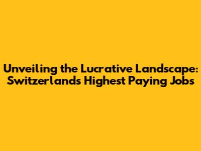 Unveiling the Lucrative Landscape: Switzerland's Highest Paying Jobs