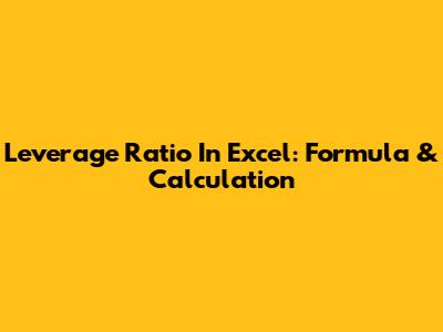 Leverage Ratio In Excel: Formula & Calculation